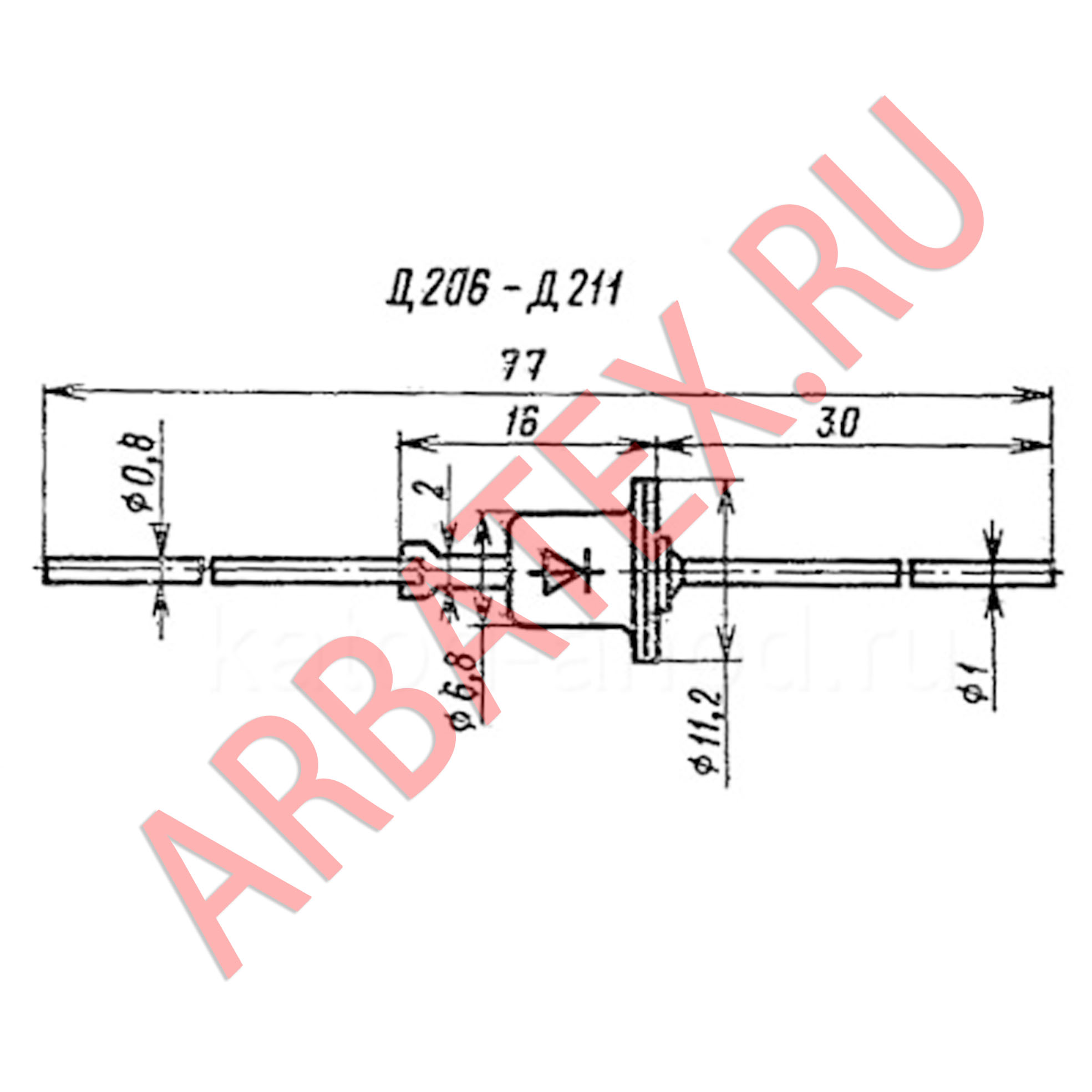 Распиновка диодов Д206, Д207, Д208, Д209, Д210, Д211 нанесена на корпусе, как и их тип.